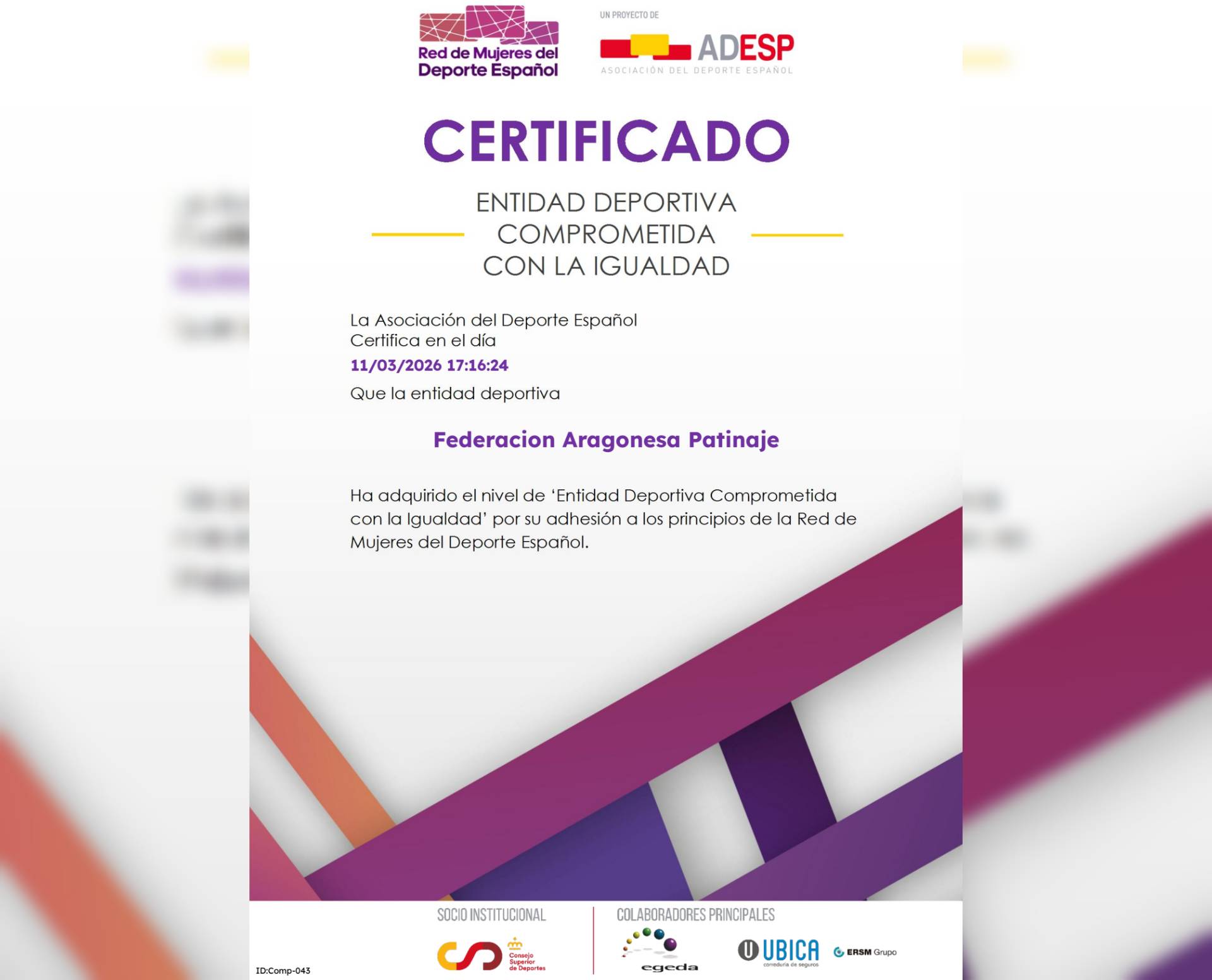 La Federación Aragonesa de Patinaje ha sido reconocida oficialmente como Entidad Deportiva Comprometida con la Igualdad tras su adhesión a la Red de Mujeres del Deporte Español, una iniciativa impulsada por la Asociación del Deporte Español (ADESP).
